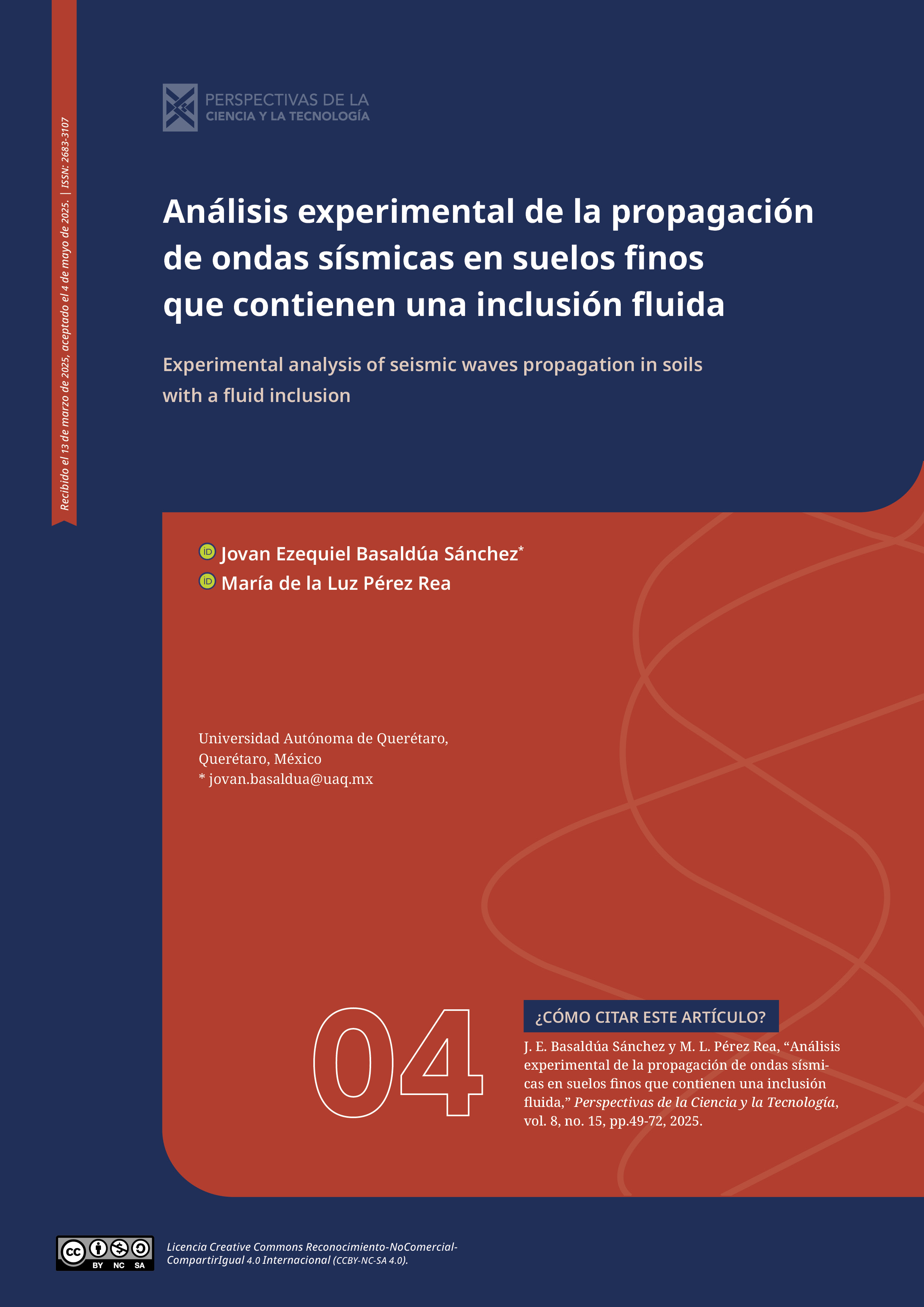 J. E. Basaldúa Sánchez and M. de la L. Pérez Rea, “Análisis experimental de la propagación de ondas sísmicas en suelos finos que contienen una inclusión fluida”, PCT, vol. 8, no. 15, pp. 49–72, Jul. 2025, doi: 10.61820/pct.2683-3107.v8n15.1861.