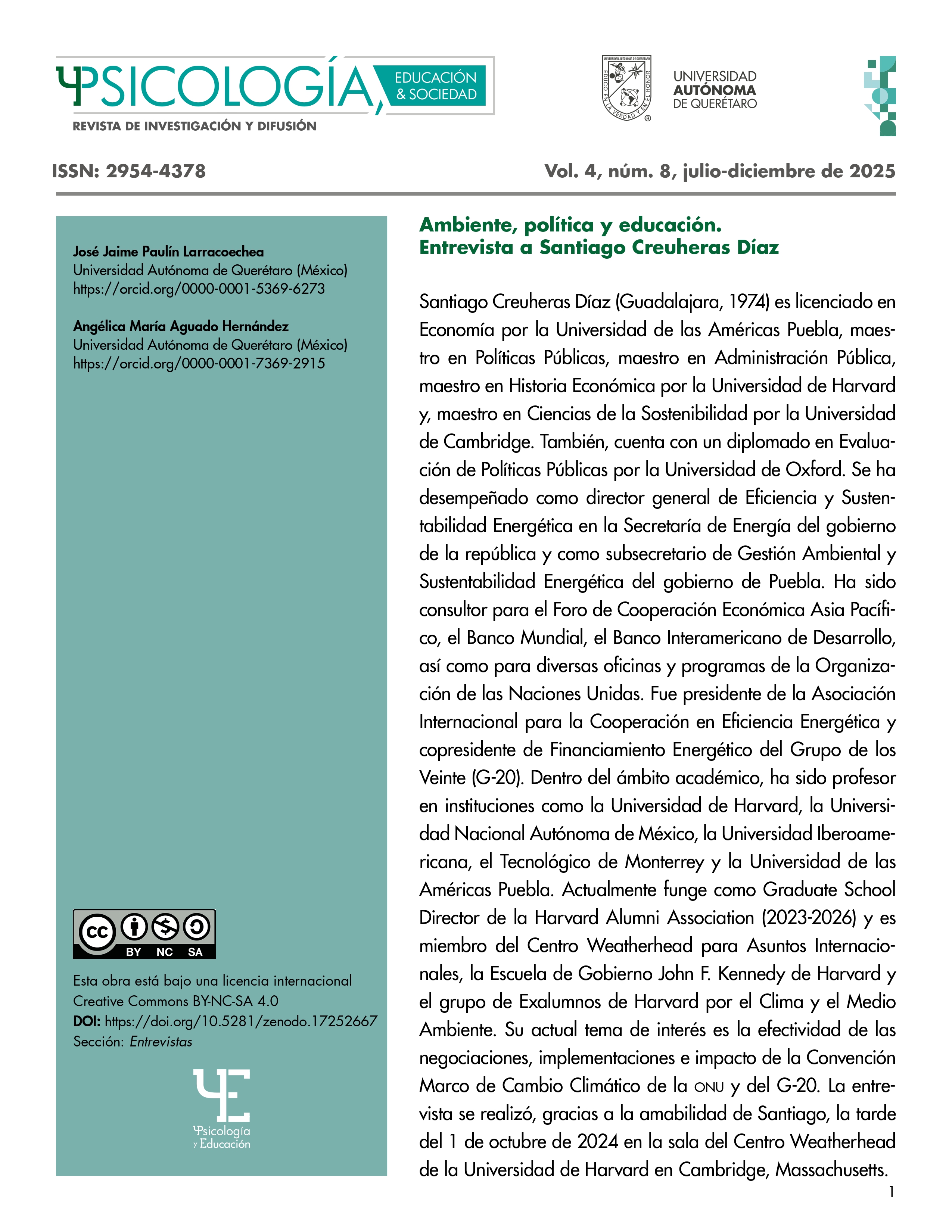 - José Jaime Paulín Larracoechea, Angélica María Aguado Hernández, Estudiantes de México en Harvard. Entrevista a Abraham Haim Majluf Rizo , Psicología, Educación & Sociedad: Vol. 4 Núm. 7 (2025)